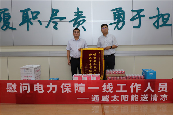 炎炎夏日送清涼,絲絲關(guān)愛(ài)入心田,送清涼活動(dòng)不僅送去了對(duì)供電保障支持的謝意,也鼓舞了供電公司保障一線工作者的士氣。未來(lái),通威太陽(yáng)能將與供電公司繼續(xù)保持密切聯(lián)系,加強(qiáng)溝通,關(guān)鍵時(shí)刻全力配合保民生、保安全,確保供電穩(wěn)定性、可靠性,確保公司在迎峰度夏期間穩(wěn)定生產(chǎn)。