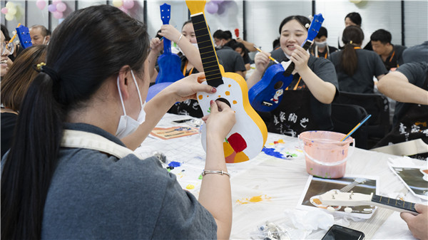 本季度生日會以DIY為主要形式,各基地開展尤克里里DIY、團(tuán)扇DIY、永生花紗繃DIY等主題活動。活動現(xiàn)場,壽星們穿戴好圍裙,通過對色彩和圖案的自由調(diào)配,制作出獨一無二的手工作品,或呆萌可愛,或個性十足,深得壽星們喜愛,整個過程治愈解壓。