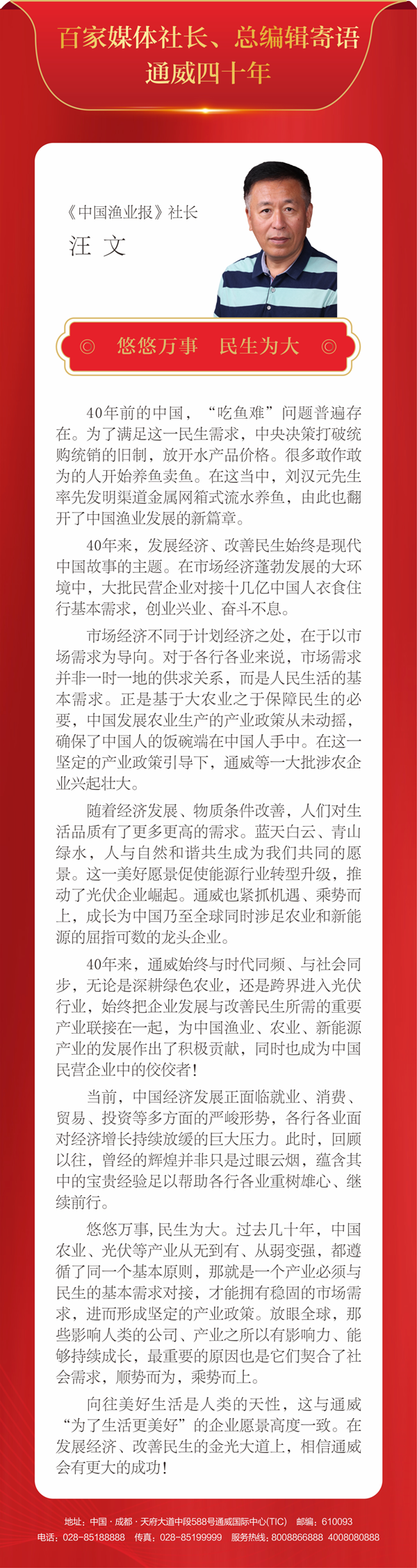 百家媒體社長、總編輯寄語通威四十年丨悠悠萬事,民生為大
