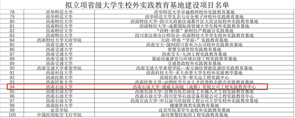 6月13日,四川省教育廳官方網(wǎng)站公示了“擬立項(xiàng)省級(jí)大學(xué)生校外實(shí)踐教育基地建設(shè)項(xiàng)目名單”,通威太陽能與西南石油大學(xué)共同申報(bào)的省級(jí)大學(xué)生校外實(shí)踐教育基地建設(shè)項(xiàng)目成功立項(xiàng)。