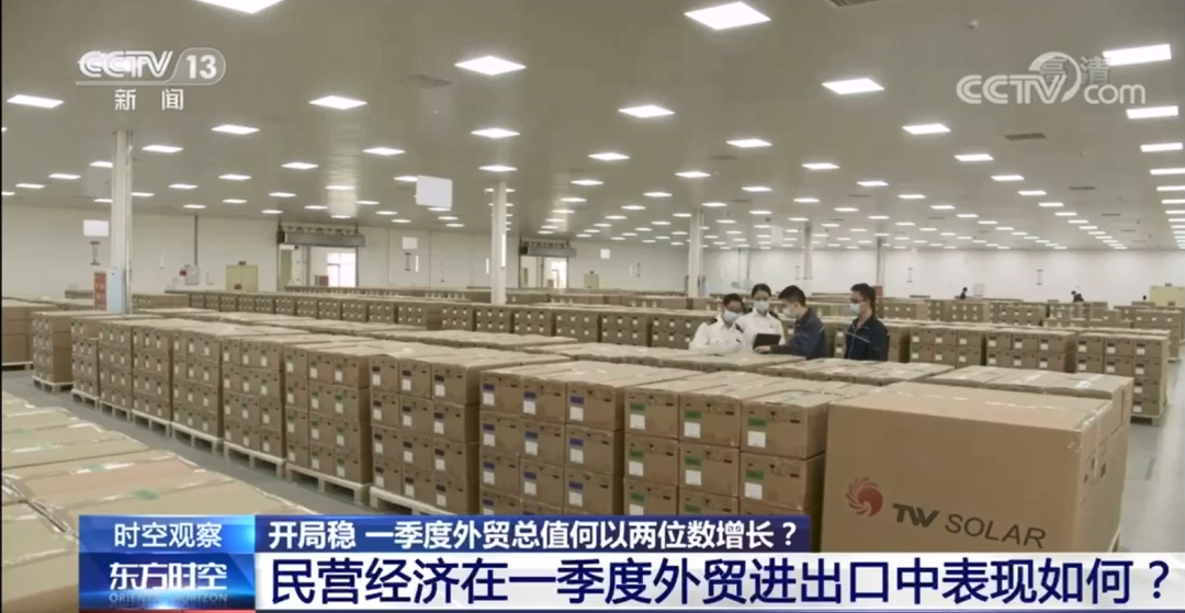 早在4月13日,央視《東方時(shí)空》播出“一季度我國外貿(mào)開局平穩(wěn)”報(bào)道,央視記者赴金堂基地現(xiàn)場采訪,實(shí)地了解企業(yè)外貿(mào)出口情況。報(bào)道指出,近期,一批價(jià)值近千萬元的光伏電池經(jīng)中歐班列運(yùn)抵法國,這是通威太陽能今年出口歐盟的第五批光伏電池。今年一季度四川省民營企業(yè)進(jìn)出口同比增長一倍,對法國、意大利等國出口增速60%以上,其中,作為光伏行業(yè)領(lǐng)先企業(yè),通威太陽能今年已經(jīng)接到超4億元的出口訂單。這則報(bào)道,讓集團(tuán)專項(xiàng)傳播小組對金堂基地有了一份新的認(rèn)識(shí)。