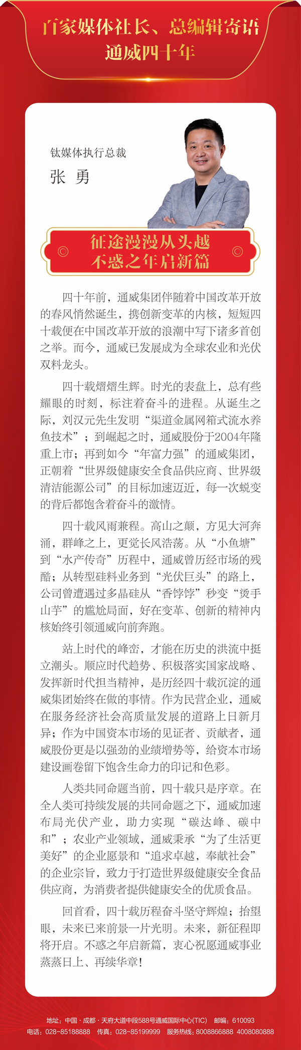 百家媒體社長、總編輯寄語通威四十年<br>征途漫漫從頭越 不惑之年啟新篇