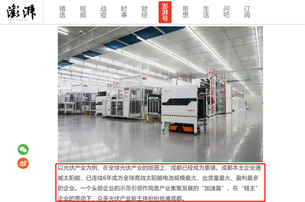《成都日報》《澎湃新聞》聚焦通威太陽能高質量發展