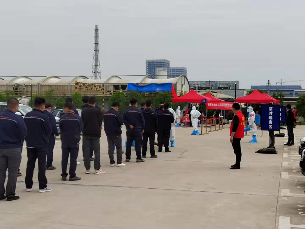 演練過程中,項目部兩名秩序維護員變身“大白”,指引員工按照步驟有序進行檢測,環境維護員背起10L消毒箱對演練區域進行循環消殺,工程維護員搬運現場防疫物資……參加演練的通宇物業員工積極主動,為本次演練做好了服務保障工作。在項目全員的后勤保障下,通威太陽能合肥基地員工自覺保持1米以上安全距離,有序進行檢測,確保了此次演練取得良好效果。