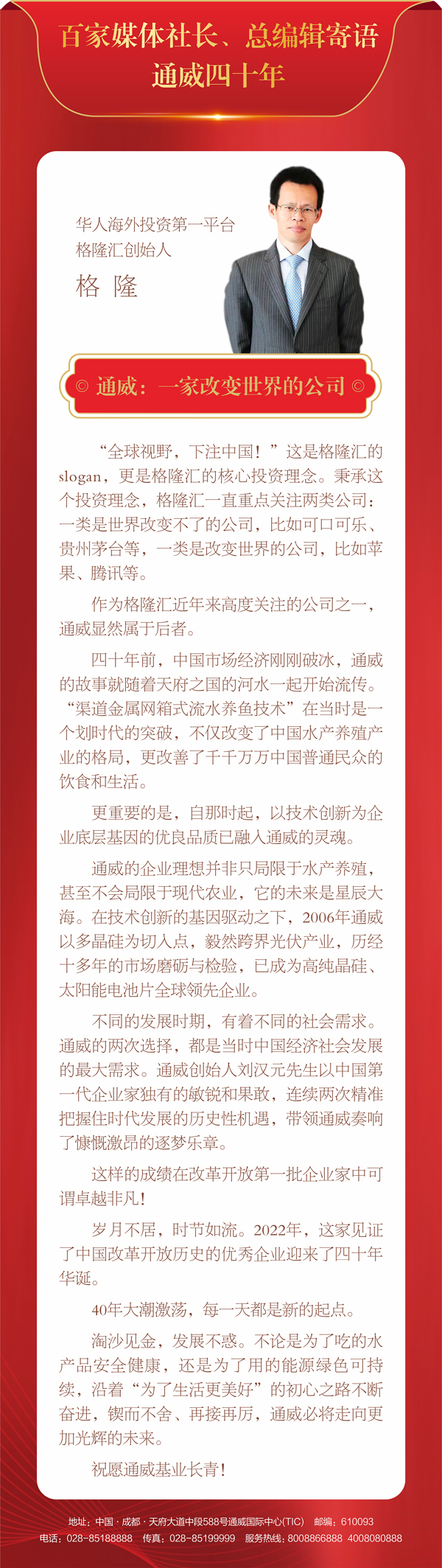 百家媒體社長、總編輯寄語通威四十年丨一家改變世界的公司