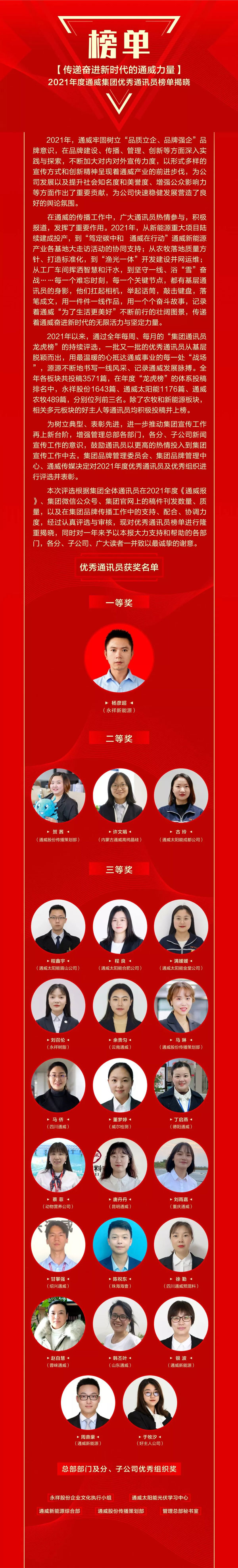 2021年度通威集團優秀通訊員榜單揭曉