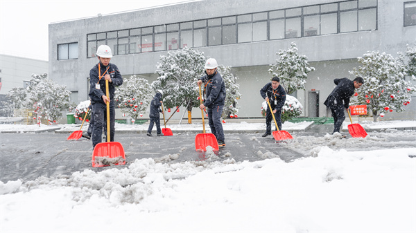 除雪任務(wù)按照應(yīng)急預(yù)案有序地開展,各部門員工干勁十足,頂風(fēng)冒雪,不畏嚴(yán)寒,揮舞著鐵鍬,認(rèn)真清掃積雪、排除隱患,呈現(xiàn)出一派熱火朝天的掃雪場(chǎng)景。鵝毛般的大雪打濕了衣服,這些都阻擋不了他們戰(zhàn)勝一切困難的決心,在各部門的齊心協(xié)力下,歷經(jīng)兩個(gè)多小時(shí)終于將廠區(qū)積雪鏟除。