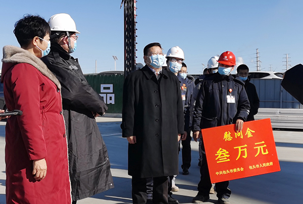 1月31日,內(nèi)蒙古自治區(qū)黨委副書記、包頭市委書記孟凡利蒞臨內(nèi)蒙古通威二期項(xiàng)目建設(shè)現(xiàn)場(chǎng)慰問,送來黨和政府的溫暖關(guān)懷及新春祝福。包頭市政府黨組成員王秀蓮、昆都侖區(qū)委書記金永麗參加慰問。內(nèi)蒙古通威常務(wù)副總經(jīng)理張習(xí)松、副總經(jīng)理游書華、總經(jīng)理助理胡瑾熱情接待。
