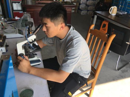 邢嘉嘉現場測水為養殖戶講解調水方案