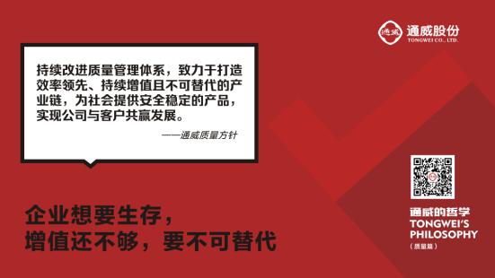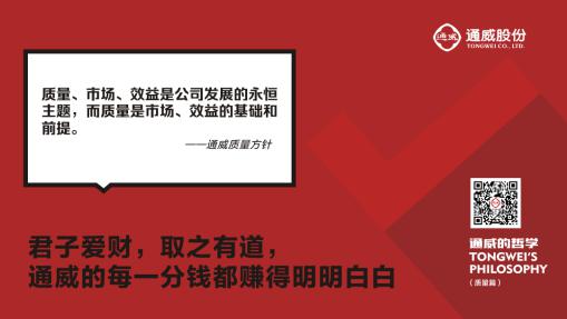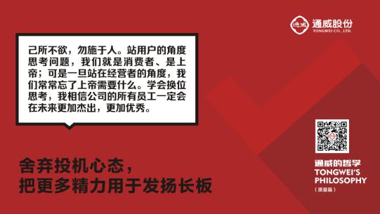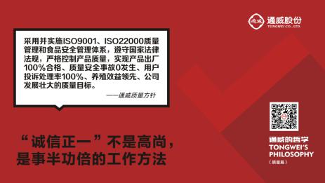 無論處于什么時代,通威對質量穩定的堅持、讓養殖效益最大化的目標,始終沒有改變。一個民營企業能穩健發展38載,究其原因,是“誠信正一”;一個民營企業穩健發展到38載,對內需要規范的、對外需要堅持的,仍舊是“誠信正一”。重塑“質量方針”的變,背后其實是通威38年“誠信正一”的不變。
