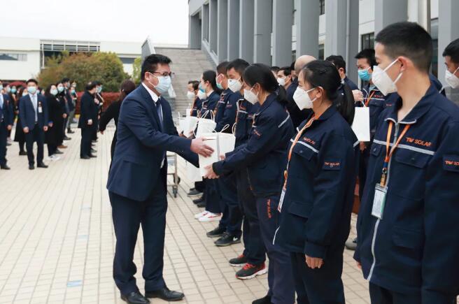通威太陽能合肥公司總經理蕭圣義為湖北籍員工發放暖心禮物