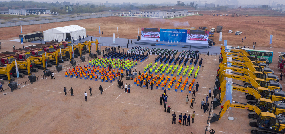 隨后,成都市委書記范銳平、市委副書記朱志宏、副市長曹俊杰,金堂縣委書記辜學斌,通威集團董事局劉漢元主席、通威集團禚玉嬌總裁、通威股份董事長謝毅上臺共同啟動裝置,現場機械鳴笛,標志著通威太陽能光伏產業基地項目正式開工。