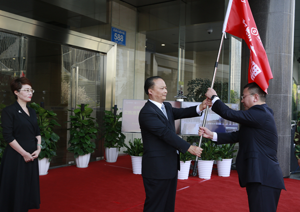 通威國際中心秩序部副經理伍勇剛接受禚玉嬌總裁授旗