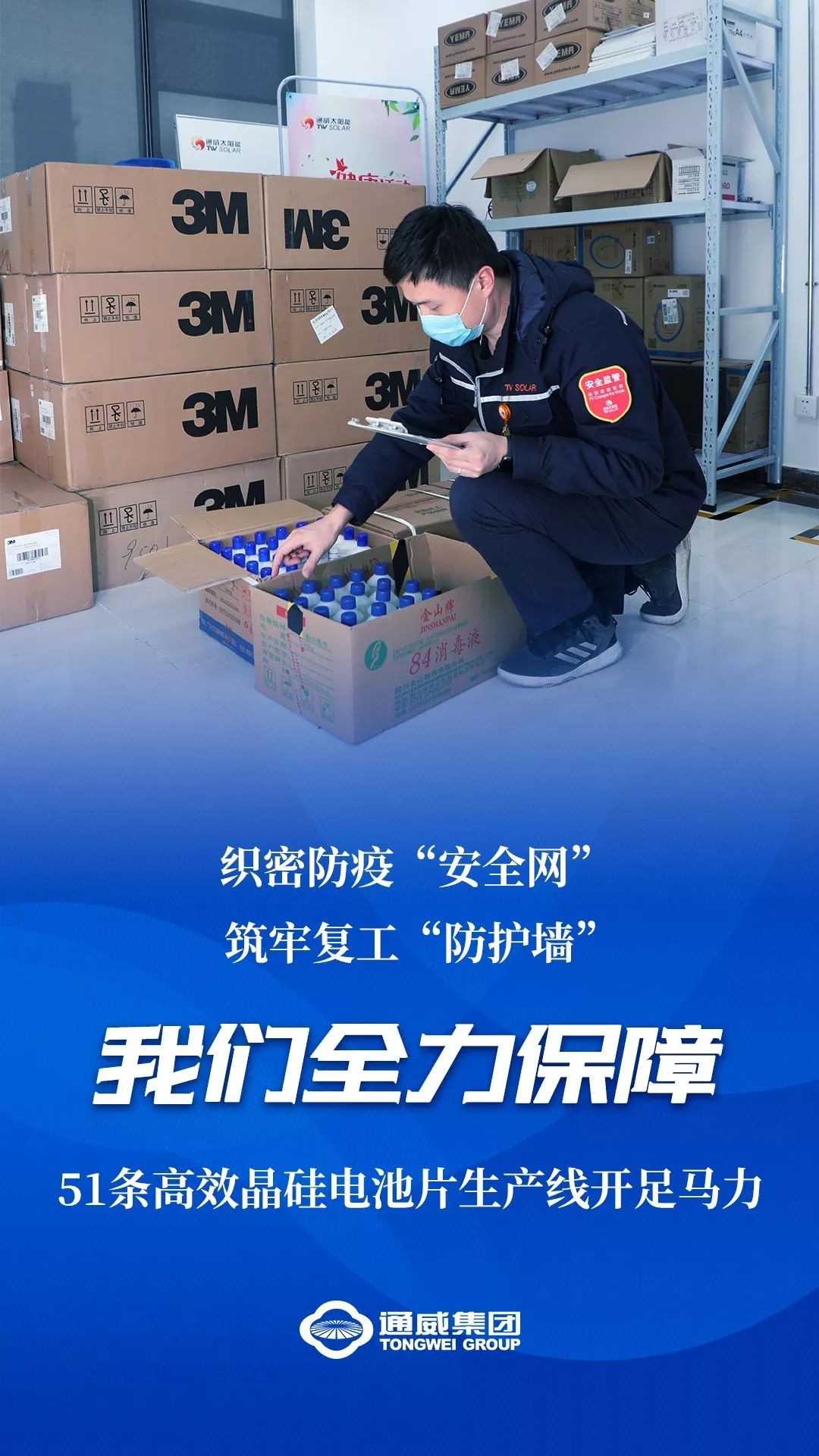 “通威太陽(yáng)能作為四川第一批復(fù)工企業(yè),51條生產(chǎn)線有序開足馬力的新聞受到央視等主流媒體點(diǎn)贊,大家都由衷感到高興,這是對(duì)我們工作的最大認(rèn)可,接下來(lái)我們還將繼續(xù)筑牢病毒阻擊‘防火墻’,為公司安全穩(wěn)定發(fā)展保駕護(hù)航。”李世濤說(shuō)。