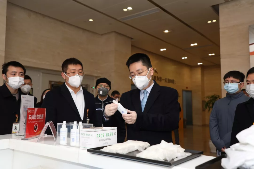 謝毅董事長(zhǎng)詳細(xì)查看消毒用品情況