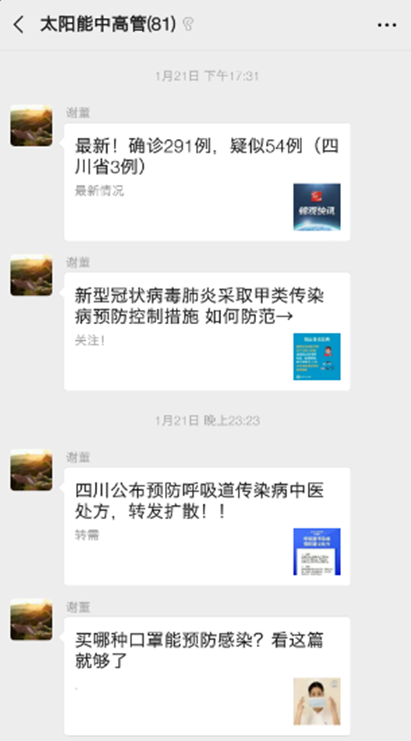 公司防控新型冠狀病毒肺炎情況及時更新并實時向集團匯報
