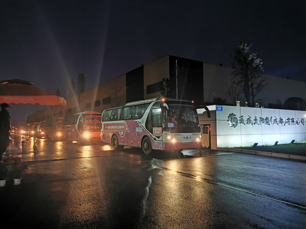 除夕凌晨,16輛通威太陽能“春節回家專車”準時就位、整齊列隊,近400名員工及家屬肩負行囊、依次登車,開啟春節返鄉 “幸福之旅”。