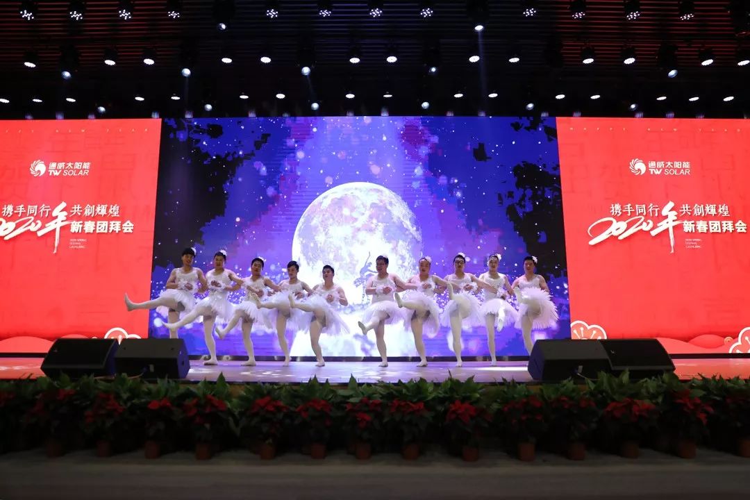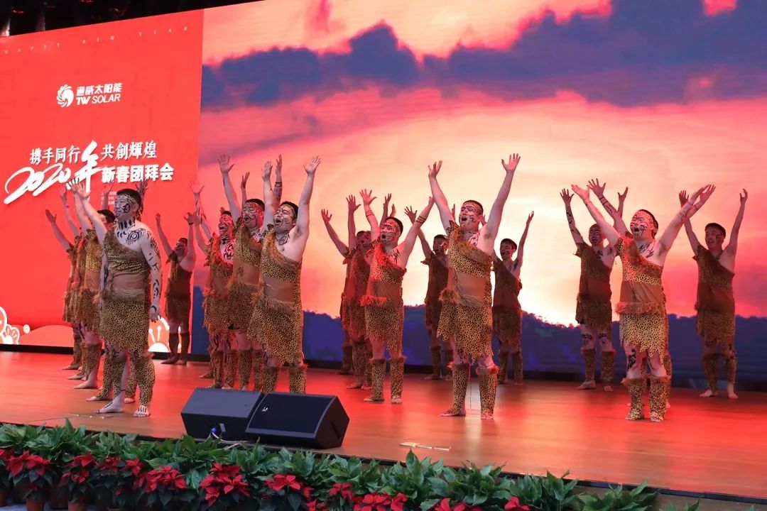 隨后舉行的新春團(tuán)拜會上,通威太陽能工會精心編排的12個形式活潑、內(nèi)容豐富的節(jié)目令人耳目一新,精彩絕倫的表演不時燃爆現(xiàn)場。由成都基地電池一廠帶來的開場秀舞蹈《毛利戰(zhàn)舞》氣勢十足,震撼全場;眉山基地以獨(dú)創(chuàng)的沙畫表演拉開帷幕,溫柔動聽的歌聲表達(dá)了美好祝愿;成都基地電池一廠和合肥基地采購部同事以歌曲《成都》為原型重新編排的吉他彈唱,滿是通威味道;由成都基地電池六廠自編自排的小品《如果我的工資是電池片》引得全場笑聲不斷;古箏表演和太極拳的組合更是吸睛不斷,由副總經(jīng)理張忠文領(lǐng)隊(duì)帶來的《太極拳》弘揚(yáng)了中華傳統(tǒng)文化。