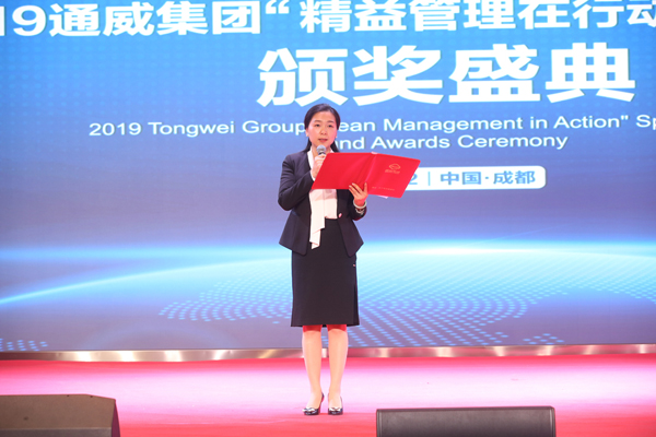 12月12日,以“厚植通威文化 引領精益管理”為主題的2019通威集團“精益管理在行動”主題演講暨頒獎盛典在通威國際中心隆重舉行。四川大學公共管理學院教授、博士生導師李桂華,四川省社會主義學院副教授、博士譚宏玲,通威股份監事會主席鄧三,通威集團企業文化專項工作小組執行組長、集團副總裁黃其剛,通威股份金融總監邱艾松,通威集團企業文化專項工作小組執行組長、集團工會主席、通威大學執行副校長張紅纓等領導出席。四川電視臺知名主持人楊林擔綱主持。來自集團、股份各體系、各板塊、各公司的員工、參賽代表等300余人齊聚總部,共享企業文化的饕餮盛宴。