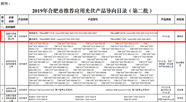 通威太陽能榮列《2019年合肥市推薦應用光伏產(chǎn)品導向目錄(第二批)》公示名單
