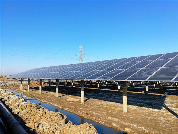 因地制宜、依法施工、合理制定施工方案——針對地勢低平,多鹽灘、鹽水沼澤和濕地,且多為淤泥及淺水的情況下,項目因地制宜,采取向魚塘排水掩蓋淤泥,配合采用泡沫平臺形式組裝搭建施工平臺以便于施工。不但提高了施工效率,優(yōu)化施工結(jié)構(gòu),降低了施工難度。同時解決了支架和組件等材料的進(jìn)場倒運問題,更是降低了支架安裝運輸過程中與淤泥直接接觸發(fā)送銹蝕的風(fēng)險。正是這種不斷進(jìn)取的精神,該項目僅用47天即實現(xiàn)了天津馬棚口項目的成功并網(wǎng),同時保證了又一個通威的優(yōu)質(zhì)項目。