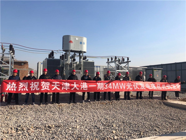 通威天津大港一期34MW光伏發(fā)電項目位于天津市濱海新區(qū)中塘鎮(zhèn)潮宗橋村,規(guī)劃容量34MWp,本期安裝容量34MWp,為通威惠金新能源有限公司扎根天津區(qū)域的首個項目,也是通威疊瓦組件的首批安裝示范項目之一,項目充分結(jié)合當(dāng)?shù)剞r(nóng)業(yè)發(fā)展特色,采取“農(nóng)光一體”模式,利用農(nóng)業(yè)大棚棚頂,安裝光伏組件及相關(guān)配套設(shè)施。采取開發(fā)、工程兩條道,立項、開工評審?fù)阶撸患夹g(shù)、采購兩不誤,設(shè)計、招標(biāo)強聯(lián)合等執(zhí)行機(jī)制。采用引孔方式對管樁進(jìn)行施工,大大縮短施工進(jìn)度。而面對嚴(yán)寒天氣,采用冬施措施,甚至升壓站土建工程采用整體篷布、采暖加熱、提高混凝土標(biāo)號等方式,在零下6度的情況下,短時間內(nèi)達(dá)到70%的混凝土強度,擠出了設(shè)備安裝調(diào)試時間。商務(wù)采購人員全程駐場監(jiān)造,并與工程人員緊密聯(lián)系,為設(shè)備及時到貨和調(diào)試爭取時間,為如期并網(wǎng)爭分奪秒。