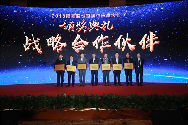 12月27日,2018隆基股份首屆供應(yīng)商大會成功召開。隆基股份董事長鐘寶申攜高管團(tuán)隊(duì)出席會議,會上就年度戰(zhàn)略合作商進(jìn)行了表彰,通威股份董事、永祥股份董事長兼總經(jīng)理段雍應(yīng)邀出席會議并接受榮譽(yù)牌匾。