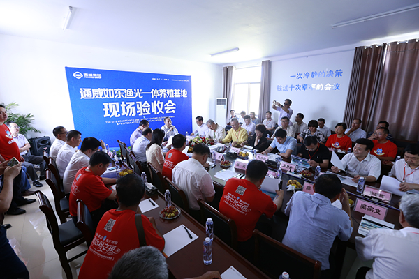 20日上午,農業(yè)部和全國水產技術推廣總站實地探訪了通威“漁光一體”基地,并召開了項目驗收會。全國水產技術推廣總站副站長李可心上臺宣布:經過專家組一致認可,通威如東“漁光一體”養(yǎng)殖基地通過專家驗收。如東基地于2015年12月30日正式并網發(fā)電以來,已發(fā)電超過1000萬度,水下養(yǎng)殖總產量預計在30萬斤以上,以“水上產出清潔能源,水下產出健康水產品”的全新模式,真正實現(xiàn)了“魚、電、環(huán)保”三豐收。