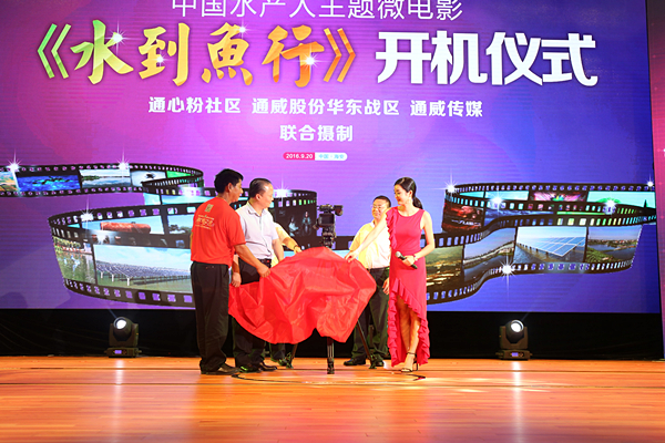 晚會同時舉行了水產界首部微電影《水到魚行》的開機儀式。十一屆全國政協(xié)常委、通威集團董事局劉漢元主席,通威集團副總裁黃其剛,通威股份副總裁兼華東戰(zhàn)區(qū)總裁王尚文,及該片男主角原型、“通心粉之星”翁漢良,女主角“美人魚”王芊共同上臺,揭開紅綢,宣布該影片正式開機。