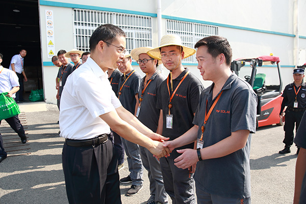 合肥高新區管委會宋道軍主任一行蒞臨通威太陽能開展“夏日高溫送清涼”慰問活動