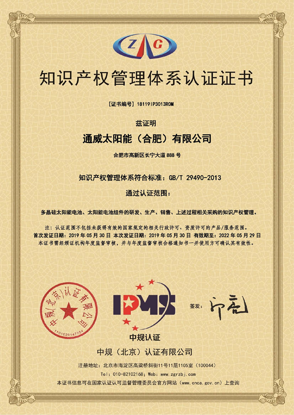 通威太陽(yáng)能順利通過(guò)知識(shí)產(chǎn)權(quán)貫標(biāo)認(rèn)證