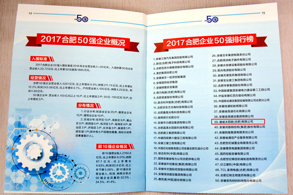 通威太陽能(合肥)有限公司榮登“2017合肥企業50強企業”畫冊