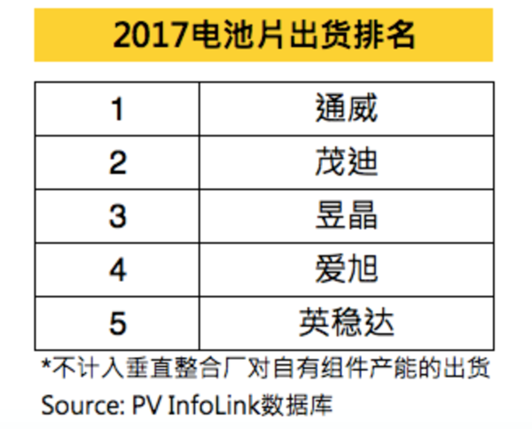 2017電池片出貨排名出爐 通威太陽(yáng)能超4GW穩(wěn)居榜首