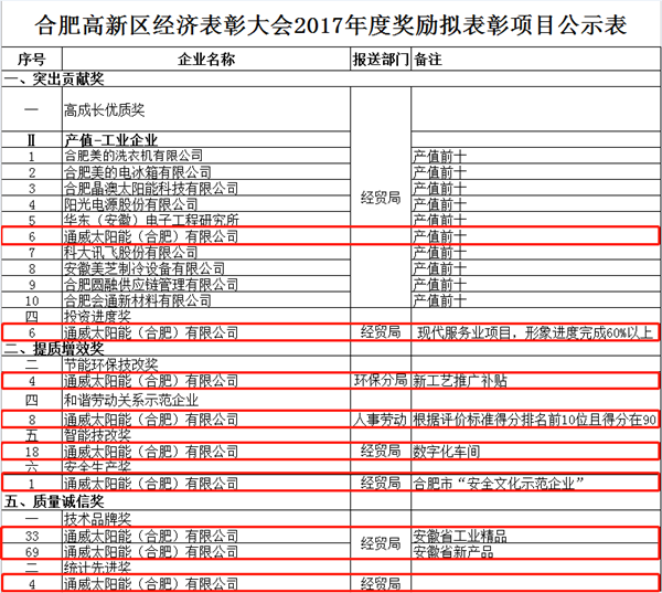 通威太陽能合肥公司入列合肥高新區2017年“工業企業產值前十”榜單