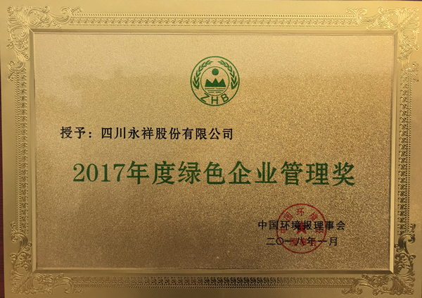 永祥股份榮獲“2017年度綠色企業管理獎”