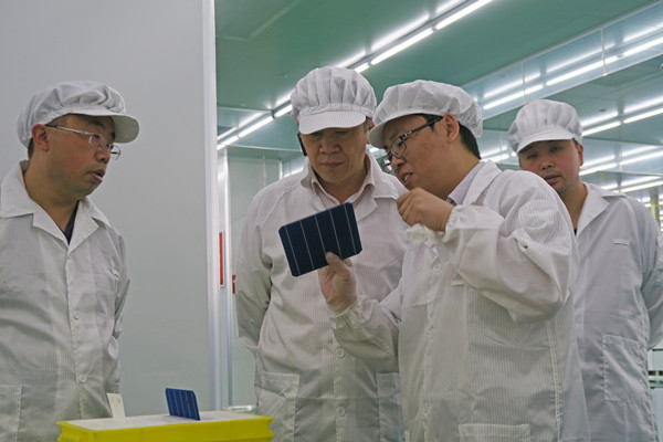 四川省經(jīng)信委總工程師黃靈調(diào)研通威太陽能成都公司