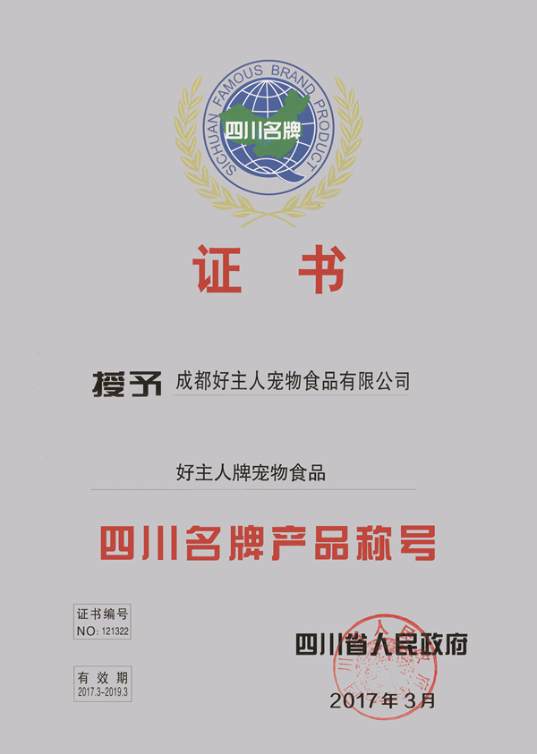 好主人牌寵物食品榮獲第十二屆“四川名牌產品”稱號