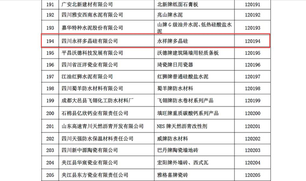 “永祥牌多晶硅”、“永祥牌聚氯乙稀”喜獲第十二屆四川名牌產(chǎn)品稱號
