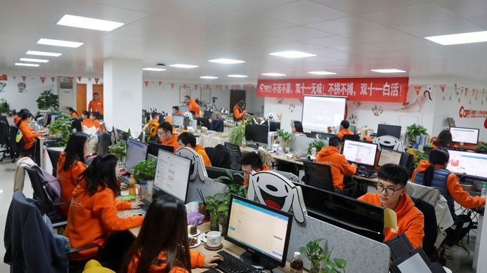 11日零點,大促活動正式開啟。線上客戶紛紛下單,客服組對接量陡增,平均每位客服同時對接60余位客戶,整個營銷中心瞬間安靜下來,只能聽見手指敲打鍵盤的聲音。