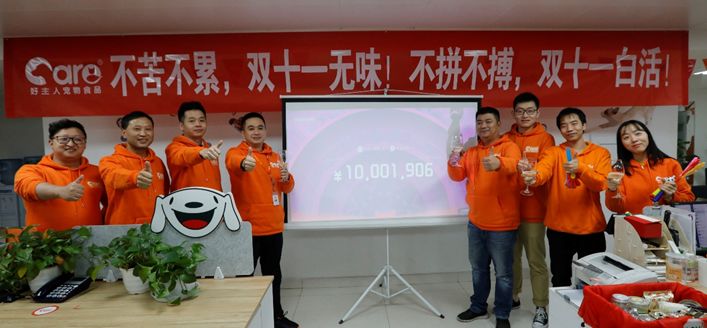 2019年“雙11”電商大戰硝煙再起,成都好主人寵物食品有限公司迎來了一年之中最為重要的“戰役”。公司全員卯足干勁,提前一個月進入備戰狀態,用30個小時的通宵奮戰,成功突破千萬大關。截至11日24點,公司全電商渠道在本月1至11日活動期間的總銷售額較2018年同比增長52%,其中公司核心電商店鋪——好主人天貓旗艦店“雙十一”當天銷售額同比2018年增長62%,各項數據再創歷史新高!