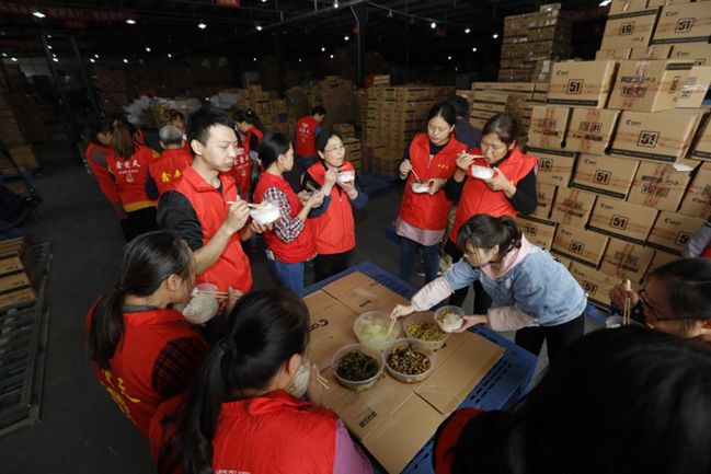物流、客服小伙伴們陸續開始吃午飯