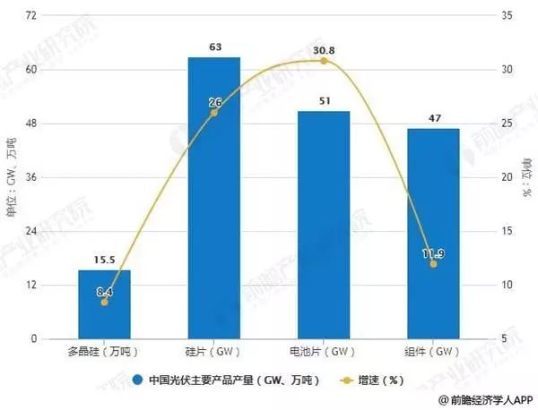 2019年H1中國光伏主要產品產量統計及增長情況