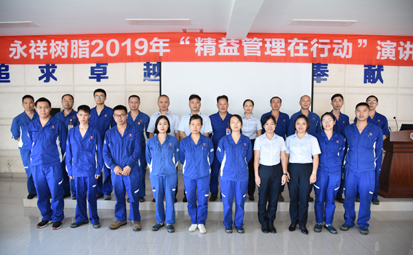 8月15日,永祥樹脂2019年“精益管理在行動”演講比賽成功舉行。永祥股份副總經理、永祥樹脂執行總經理周宗華,永祥股份企業文化建設執行組長、戰區文化專員、編輯部主編龍小龍,各部門負責人出席并擔任此次比賽的評委,永祥樹脂人事行政部副經理方燕主持。