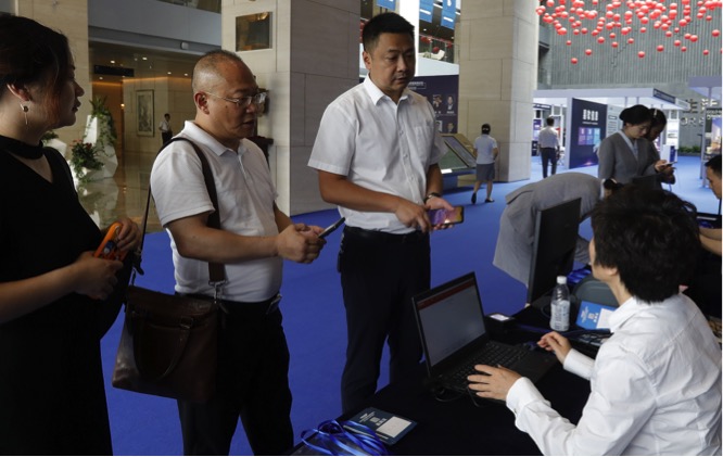 工作人員指引嘉賓掃碼簽到
