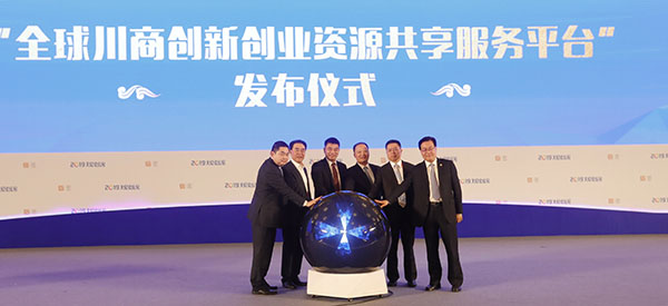 論壇期間,“全球川商創新創業資源共享服務平臺——川商云”正式發布,劉漢元主席等川商代表上臺,共同見證“川商云”面世。