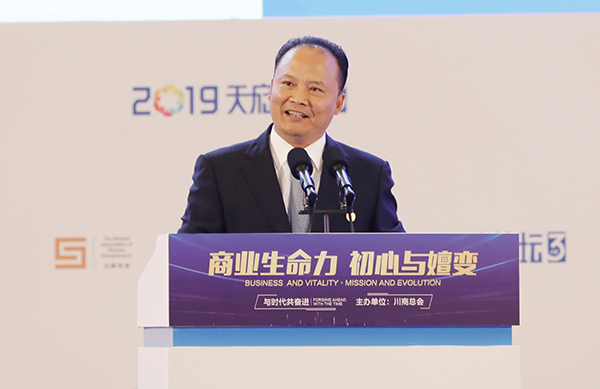 樊友山副書記表示,本次川商發展大會是在全國上下喜迎新中國成立70周年,全黨深入開展“不忘初心、牢記使命”主題教育,四川全面推進“四向拓展、全域開放”戰略部署進程中的一件盛事、喜事。大會也是我國民營企業在新時代發展壯大的一個縮影,是我國民營企業家特別是廣大川商精神風貌的一次展示,必將濃墨重彩地寫入四川經濟社會發展的歷史。希望廣大川商正確看待當前形勢,保持定力、堅定信心,圍繞國家整體戰略,優化布局、找準方向,努力實現高質量發展,在創新、創造、創富中拿出川商方案,打造川商傳奇、成就川商經典。