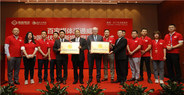 儀式上,陸克文閣下與劉漢元主席分別為企業(yè)代表、聯(lián)盟秘書長、通威集團副總裁黃其剛以及媒體代表、聯(lián)盟執(zhí)行秘書長、黑鷹光伏總編輯李文友授牌,在10家聯(lián)盟發(fā)起媒體代表以及現(xiàn)場嘉賓、媒體同仁的共同見證下,中國光伏行業(yè)新媒體聯(lián)盟正式成立!