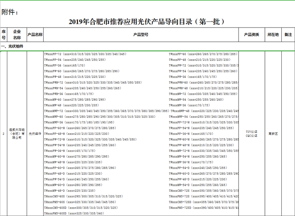 通威太陽能榮列合肥市推薦應(yīng)用光伏產(chǎn)品導(dǎo)向目錄公示名單