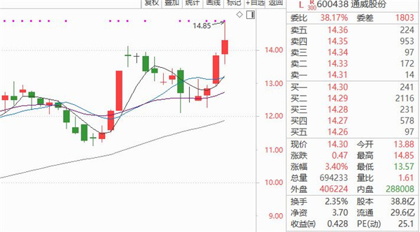 4月18日,A股光伏龍頭上市公司——通威股份(600438)股價創(chuàng)出歷史新高,盤中最高14.85元/股,收盤漲3.4%,報于14.3元/股。記者注意到,通威股份最近下調了PERC電池價格,此舉被視作風向標,光伏降價已成大趨勢。一邊是降價,另一邊是光伏龍頭紛紛投資擴產,在記者采訪中,業(yè)內人士普遍認為,目前海外市場對光伏的需求增量顯著,而隨著價格的下調,光伏相對于火電的競爭力也將顯現(xiàn)。