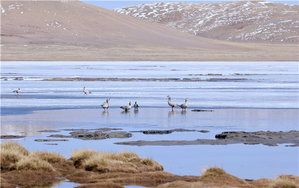 班德湖畔棲息的斑頭雁
